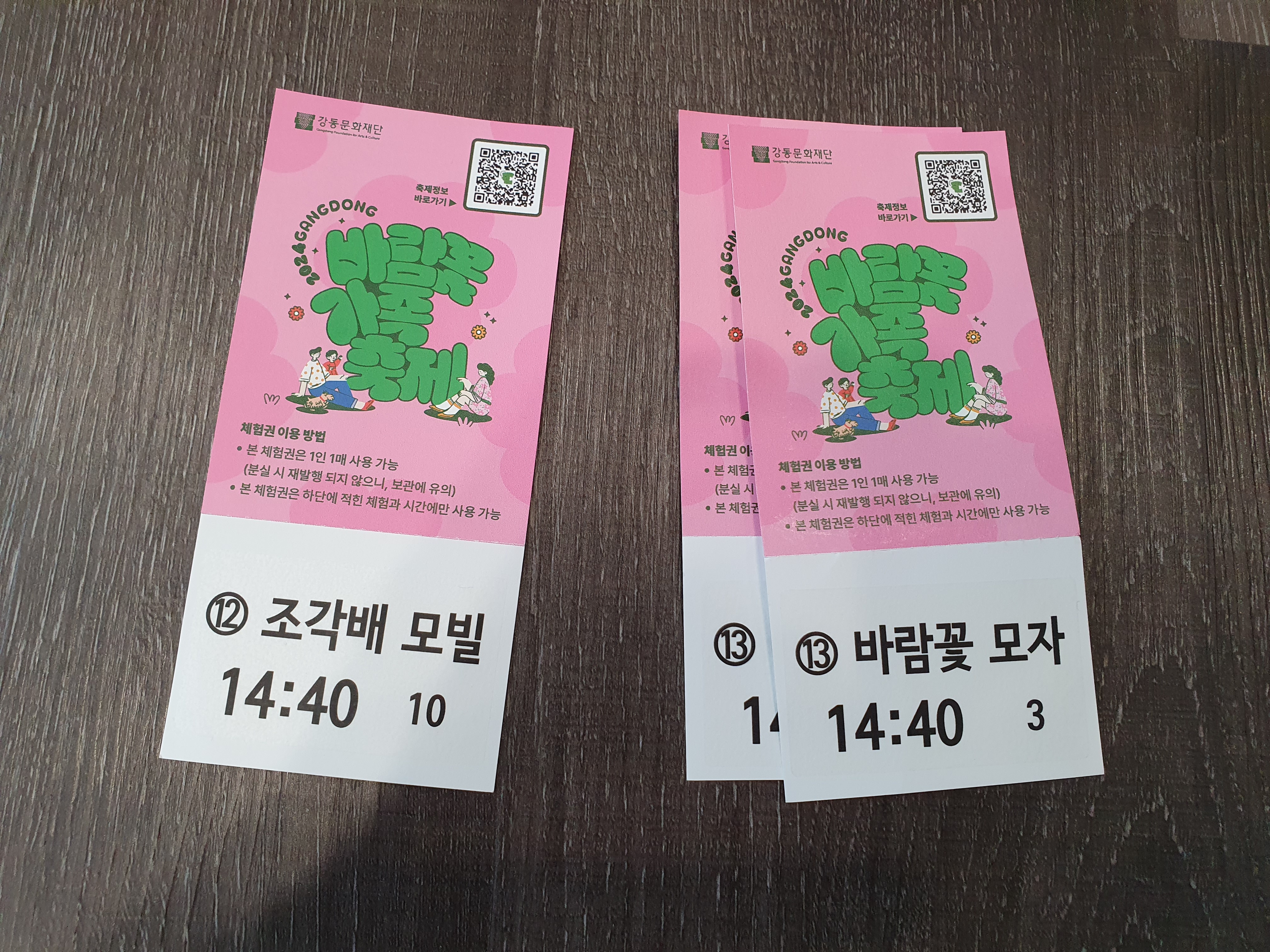 체험부스에서 뭔가를 하려면, 체험권을 받아야했다.