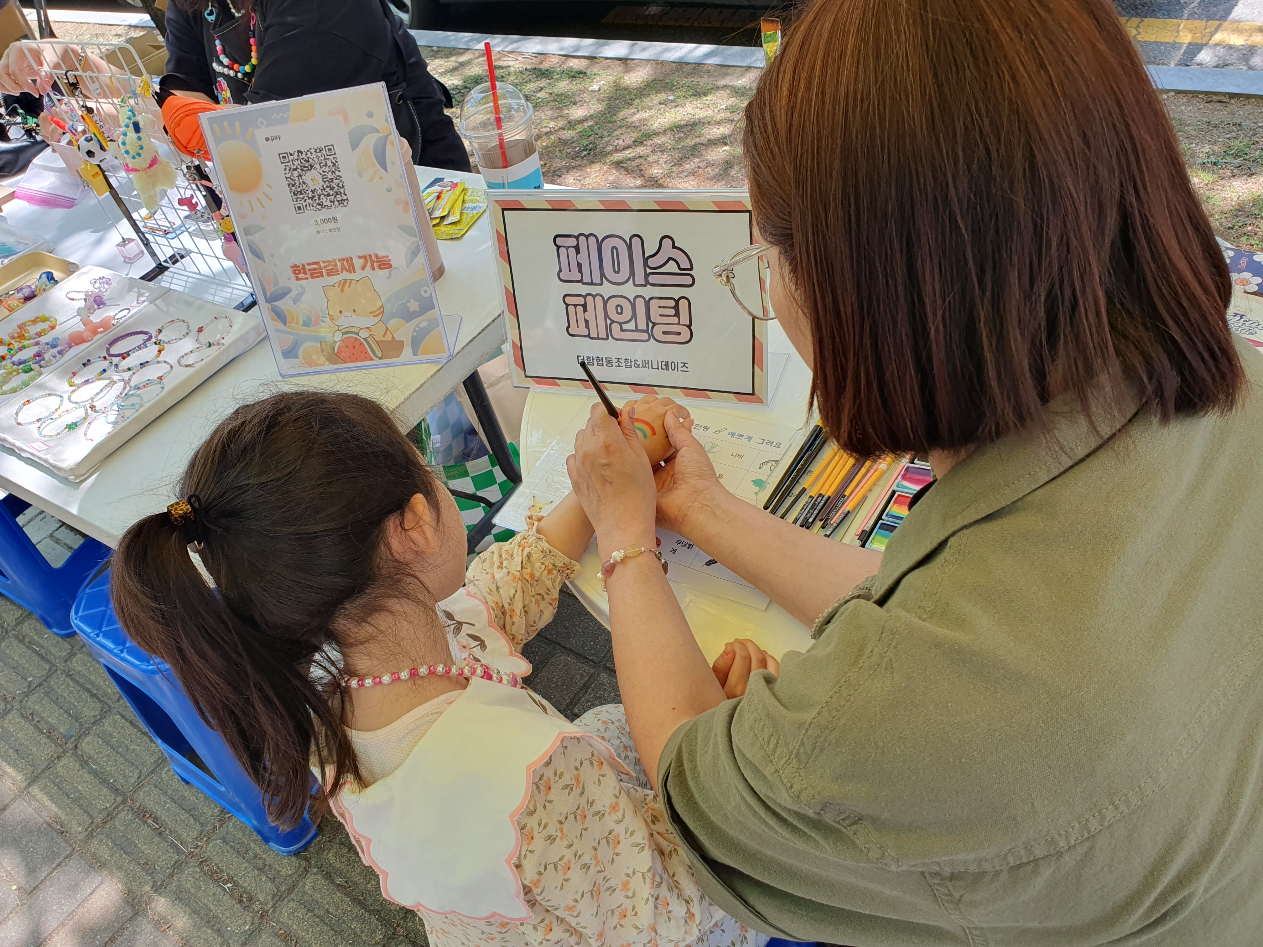 바람꽃축제 행사장 가는 길에 '벼룩시장'이 열렸다. 이곳저곳 구경하다가, 아이가 페이스 페인팅을 해보고 싶다고 했다.