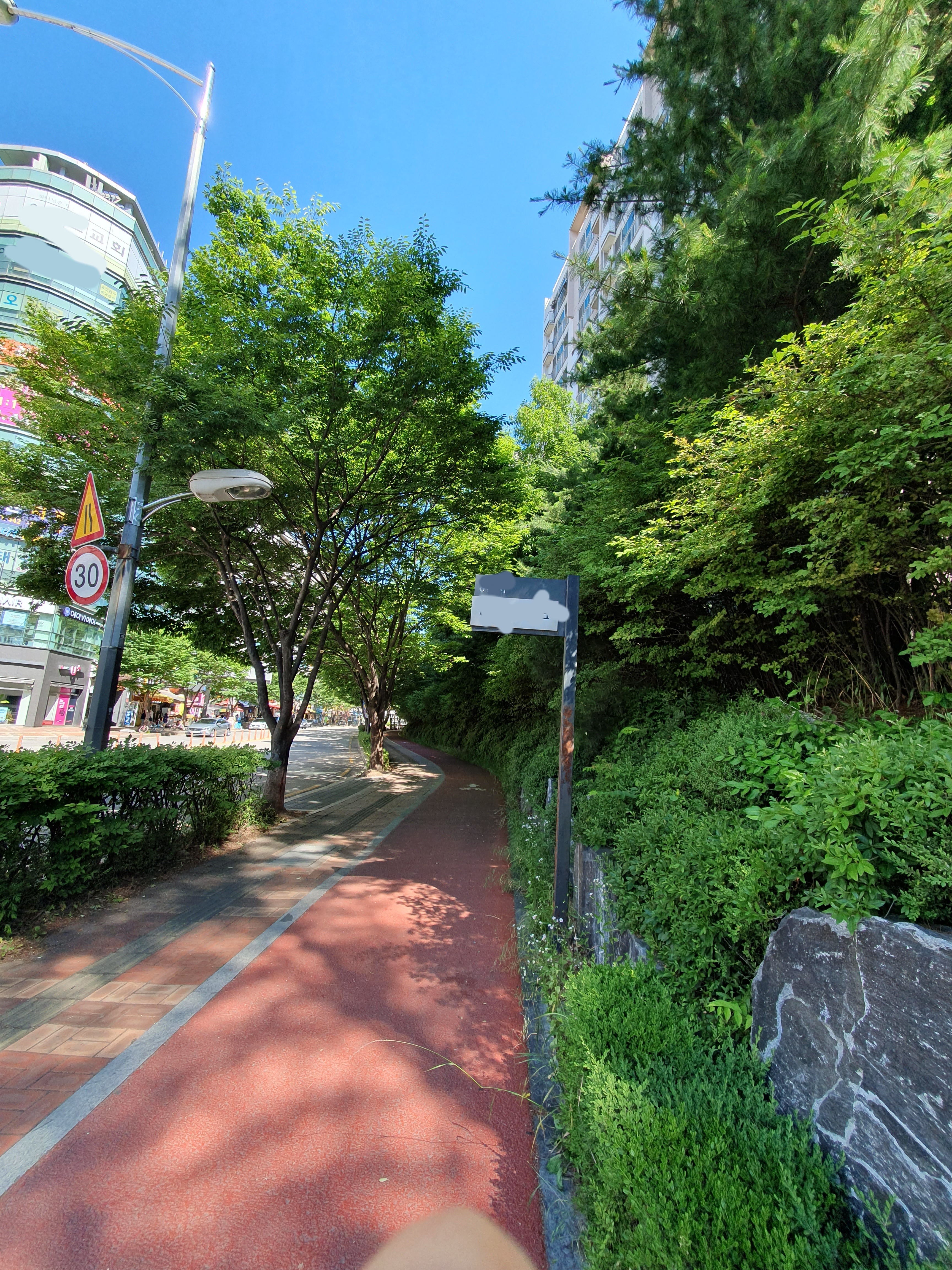 아침에 아이를 등교시키고, 도서관 갔다가 집으로 돌아가는 길.