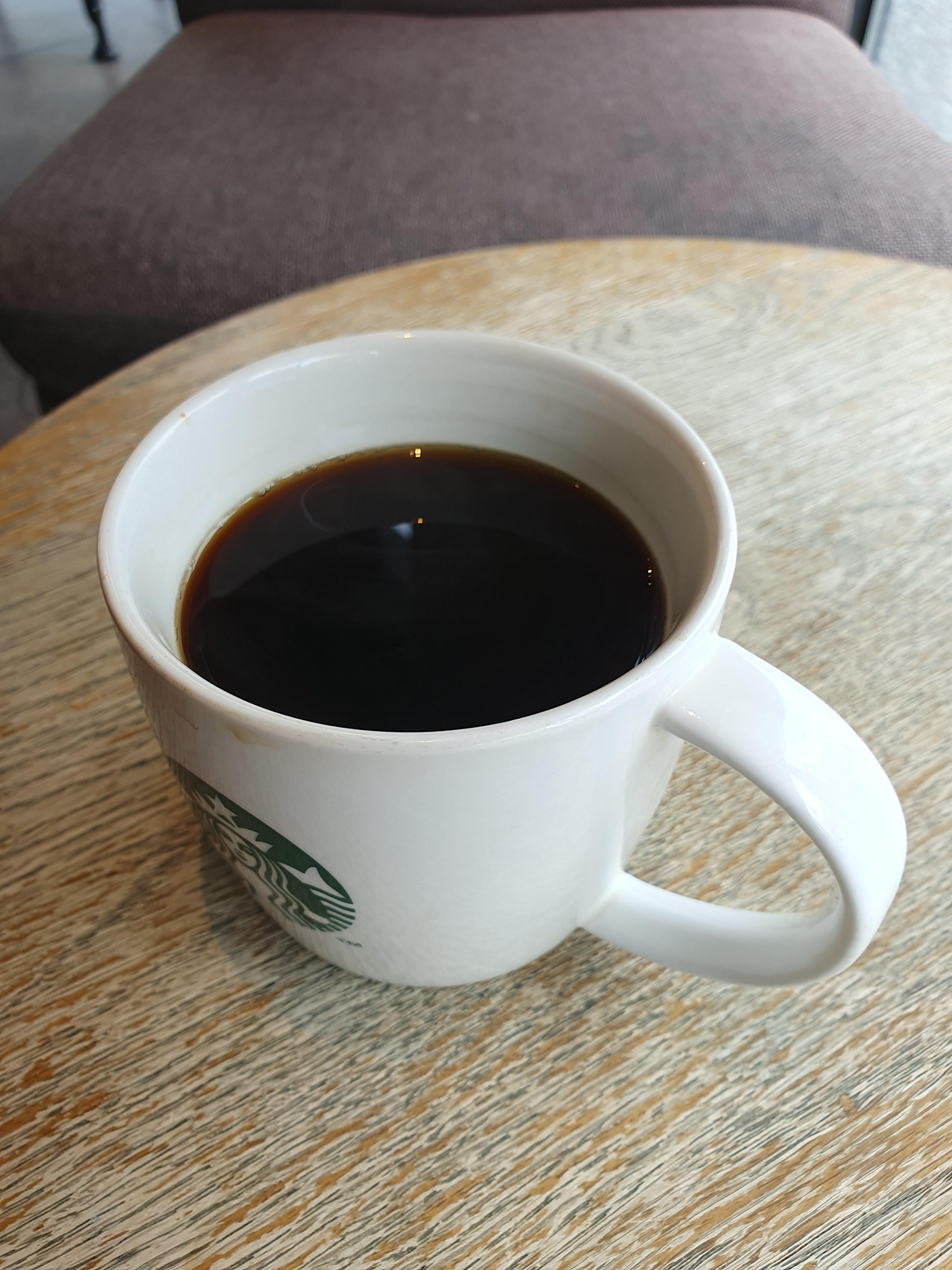 스타벅스 '오늘의 커피' Small size (3,300원) 가보니까 정말로 3,300원 짜리 커피가 있었다. 드립커피였다. 주문할 때 "오늘의 커피, 제일 작은 사이즈로 주세요." 라고 말해야 한다. 스몰사이즈 위에