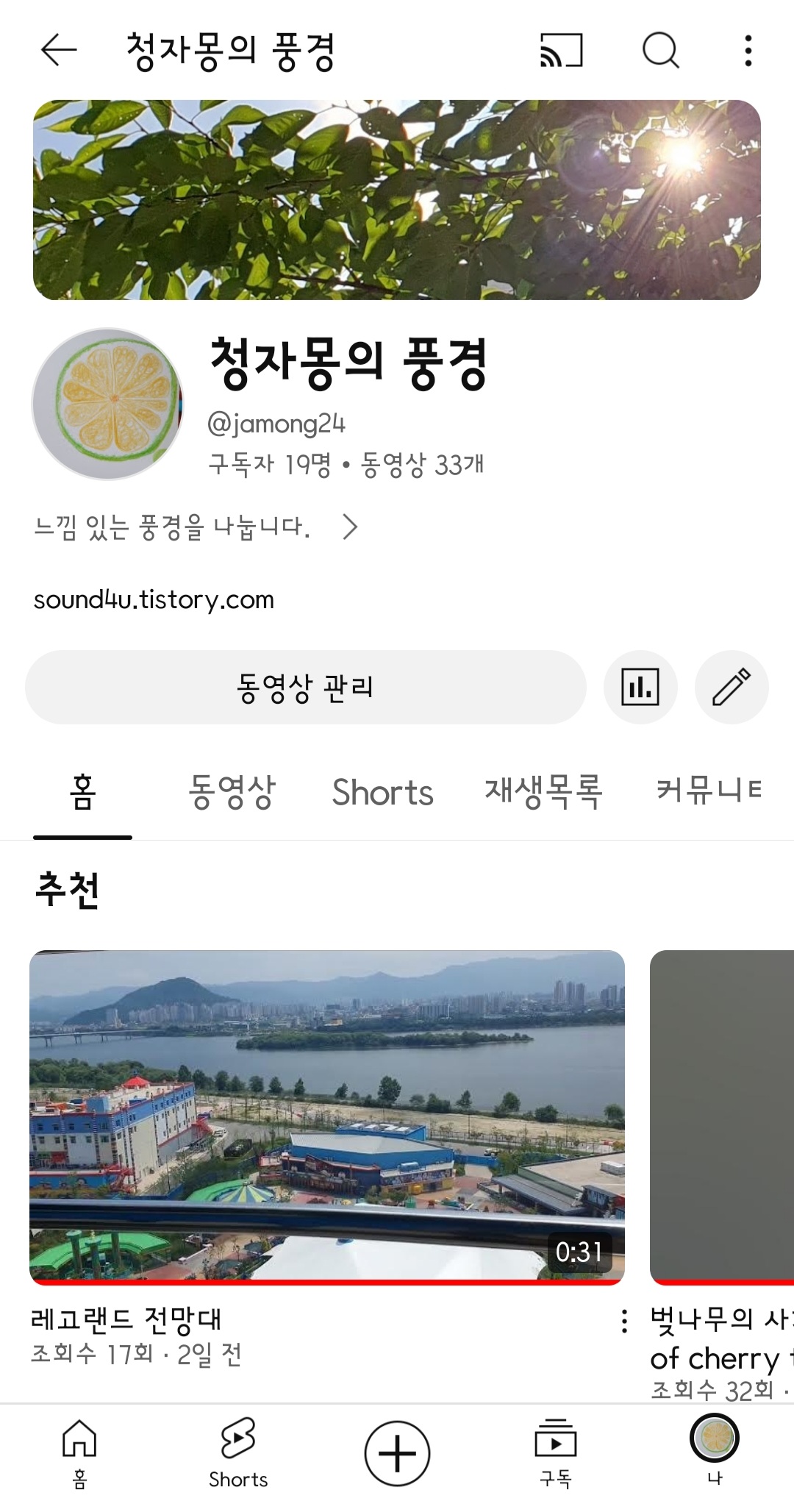 청자몽의 풍경느낌 : 유튜브 채널을 오픈하다
