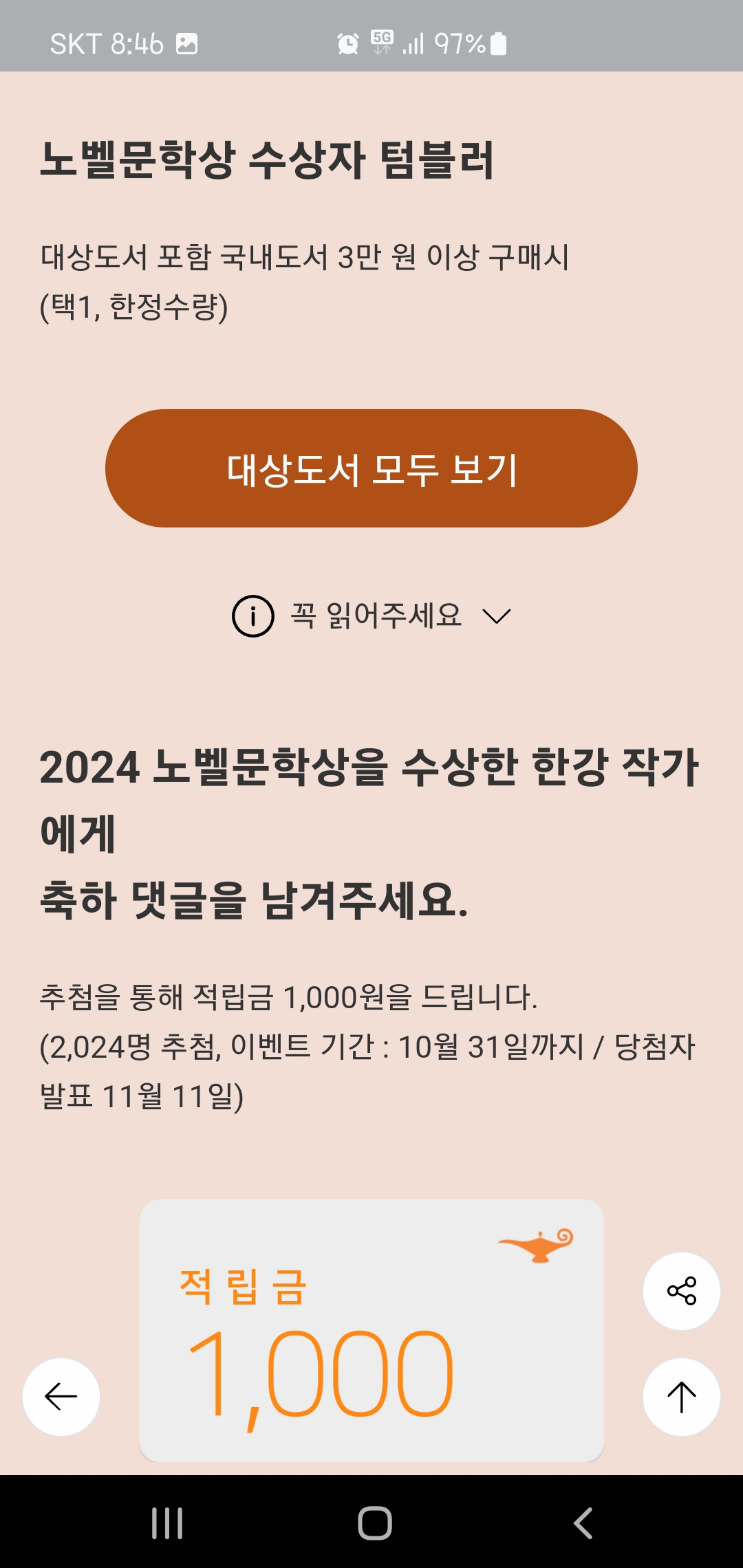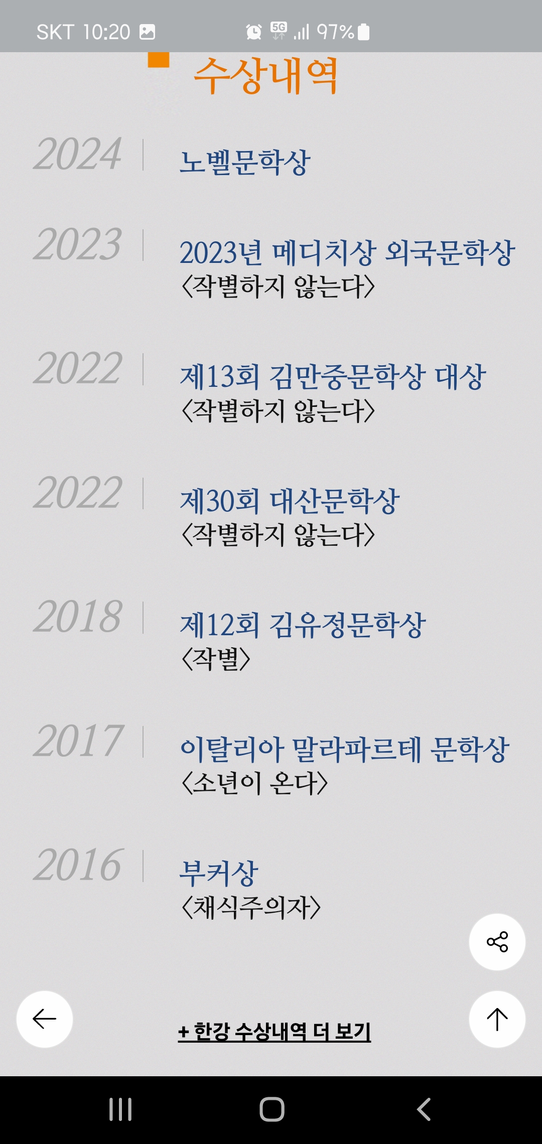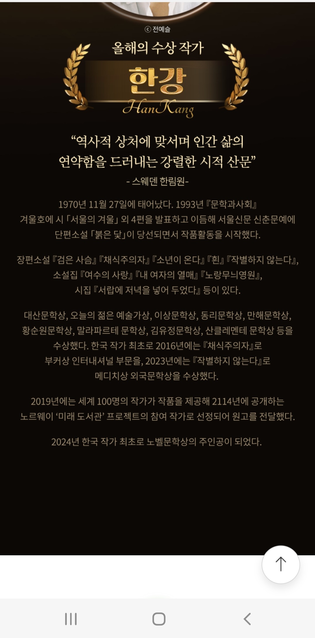 노벨문학상 수상을 기념해서 앱 화면을 갈무리했다. 100년에 한번 나올까 말까 한 엄청난 일을! 내 생애에 보게 되다니.. 다시 한번 축하드린다.