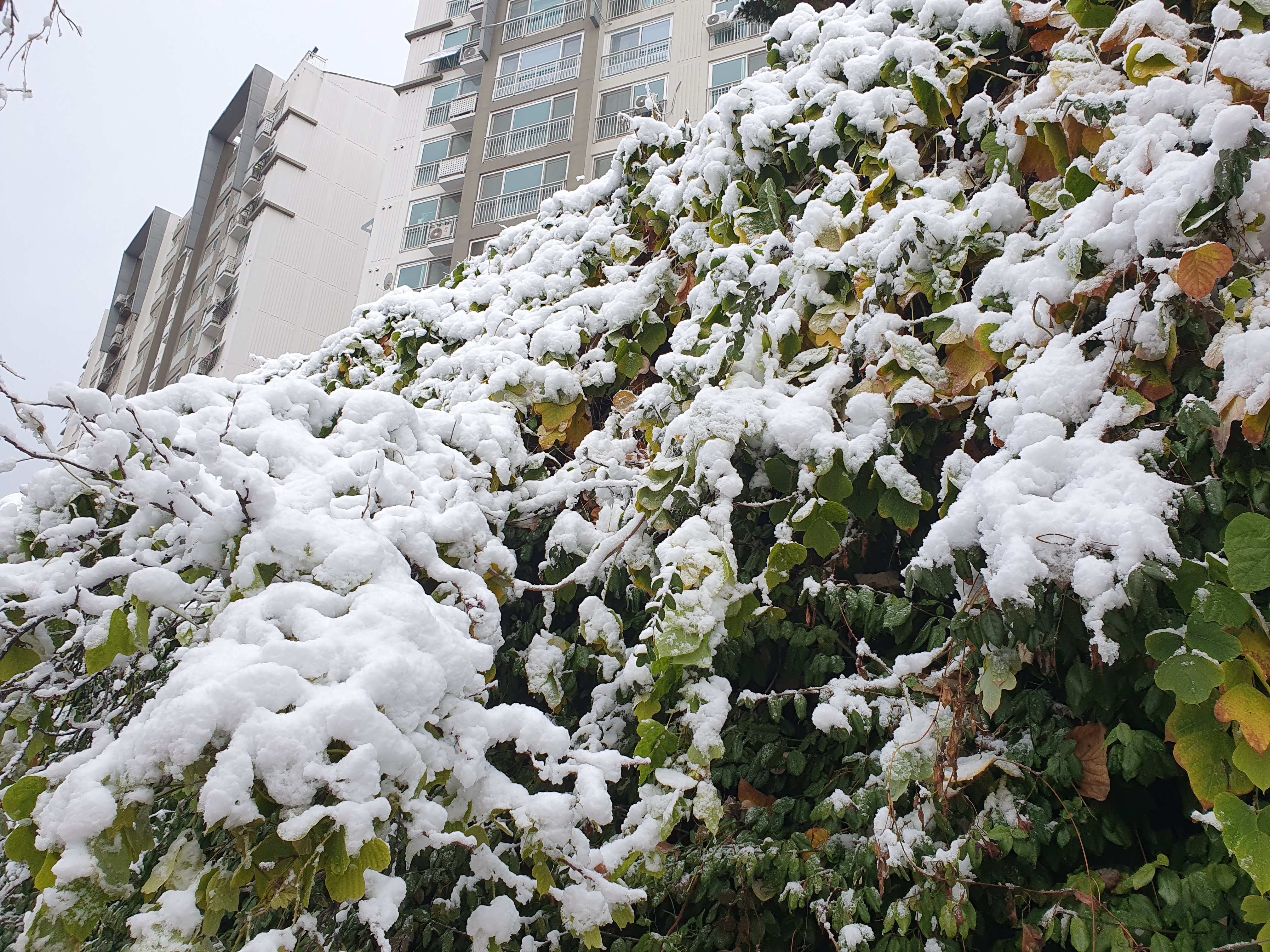 이번에는 주중에 눈이 내렸다.
