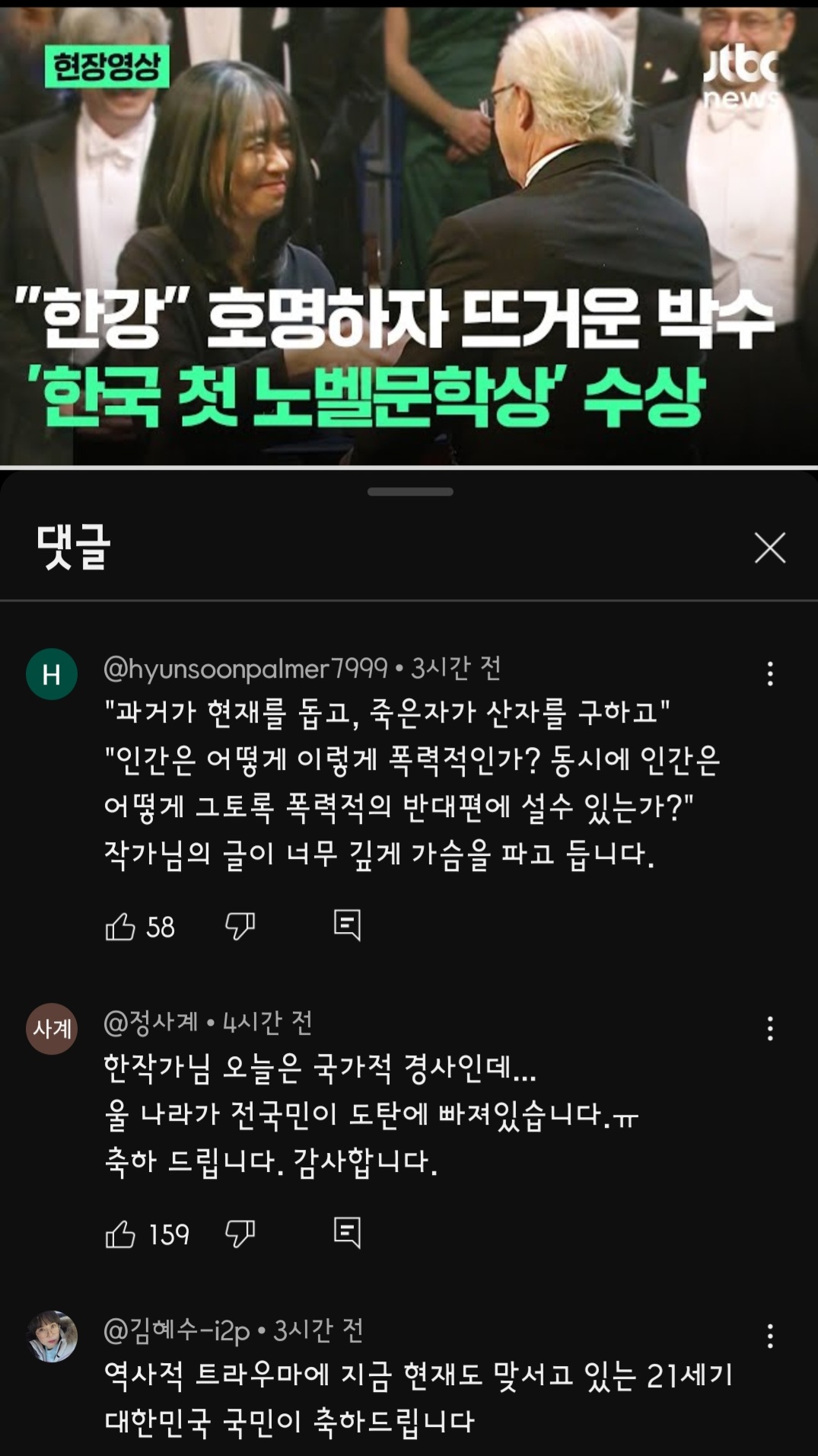 노벨문학상에 소설가 한강! 드디어 우리나라에서도 노벨문학상 수상자가 나오다니!! 감사합니다! 축하합니다. 한강 작가님!!! 우리나라에서도 노벨문학상 수상이 가능하다니. 놀랍다. https://youtu