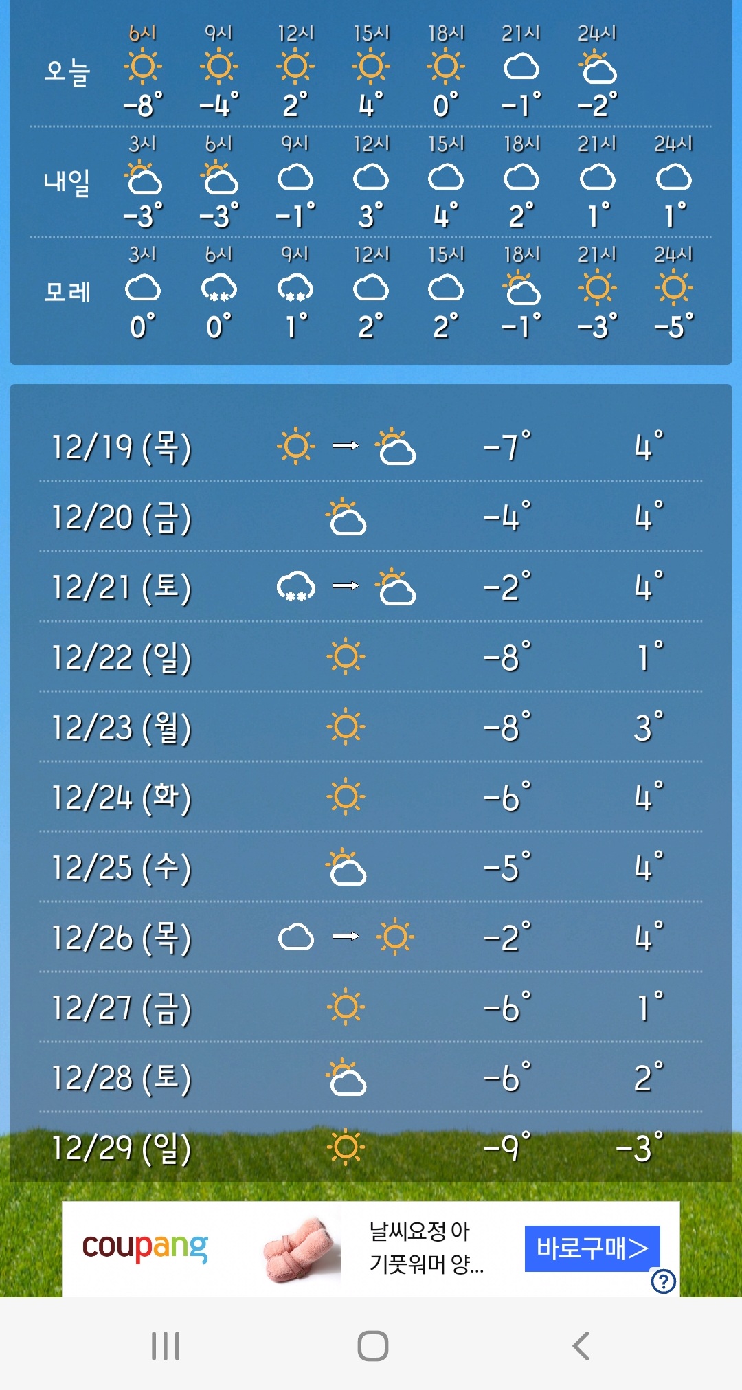 수요일부터 밤에 영하7도로 뚝 떨어졌다.
