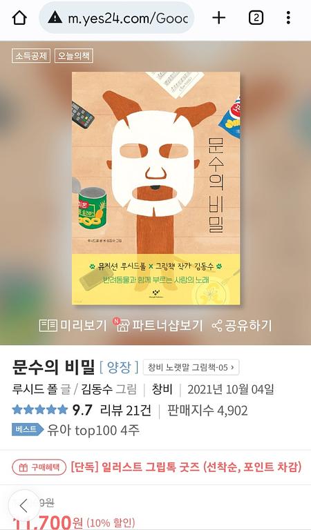 제목 : <문수의 비밀>라는 그림동화책과 노래가 생각나요./ 제 '사람 강아지' 얘기도요 ^^.