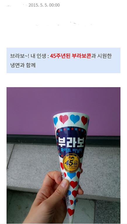 콘은 맨날 부라보콘을 먹는다. 부라보콘도 여러버전이 많지만, 사면 꼭 하얀 포장지만 사게 된다. 가끔 다른 버전도 먹어보는데, 역시 오리지널이 제일 맛있다. '브라보콘'으로 쓰고 싶지만, '부라보콘'으로 출시된 바람에 이름을 그대로 했다고 한다. CM송도 많이 들어 환청처럼 자동 재생되는, 해* 부라보콘이다.