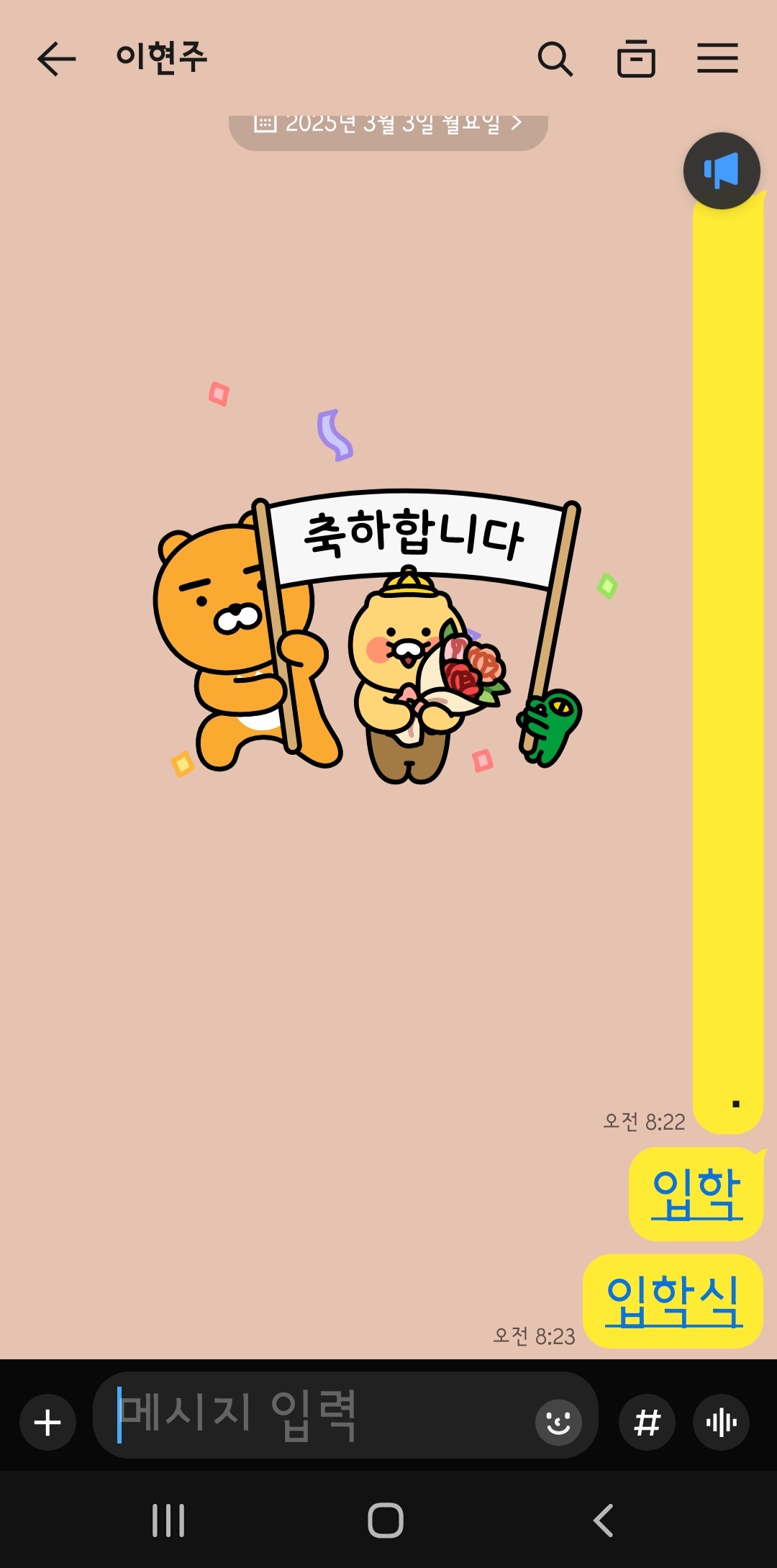 입학, 입학식 (2025 카톡 입학식 이스터에그) : 카카오톡 배경이 바뀌는 특별한 문구