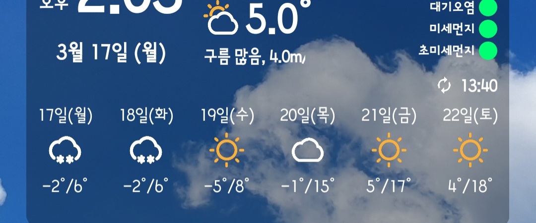 | 갑자기 18도? 4월 중순 날씨란다. (0) | 2025.03.21 |