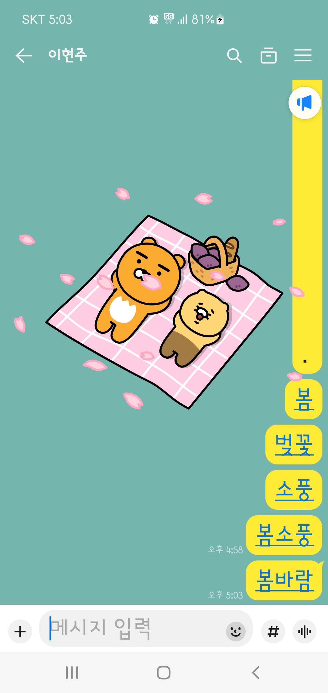 [카톡 배경이 바뀌는 문구] 봄/ 벚꽃/ 소풍/ 봄소풍/ 봄바람 : 4월 4일 청명(봄이 되어 하늘이 맑아진다는 날)