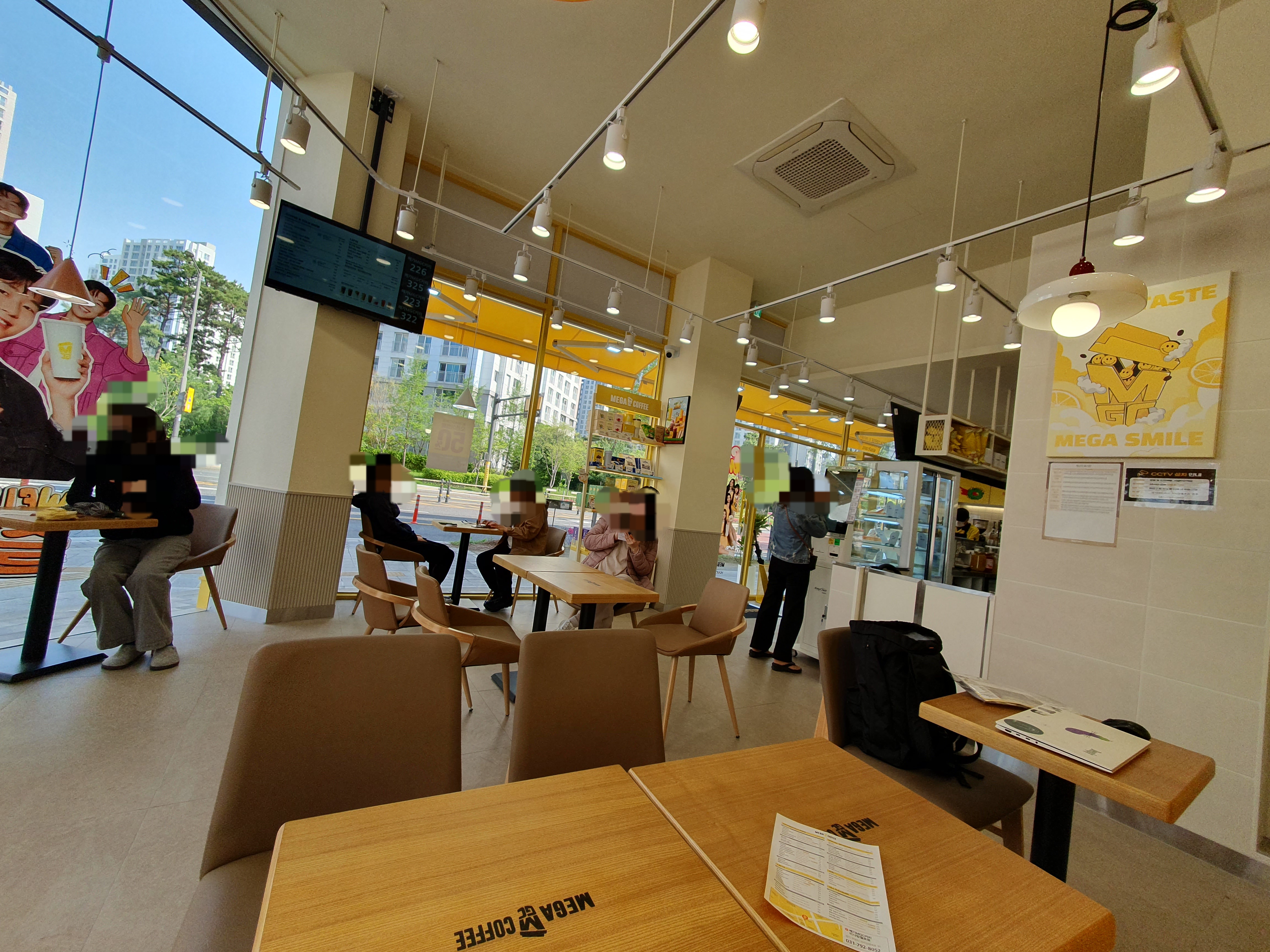 주문하고 다리 아파서, 메가커피 전단지만 슬쩍 올려진 자리에 앉았다. 아무래도 혼자 넓은 자리에 앉아 있으니, 옆에 테이블 이용해도 되는지 물어보는 분들이 여러분 있었다. 금방 갈꺼라고 말했다.