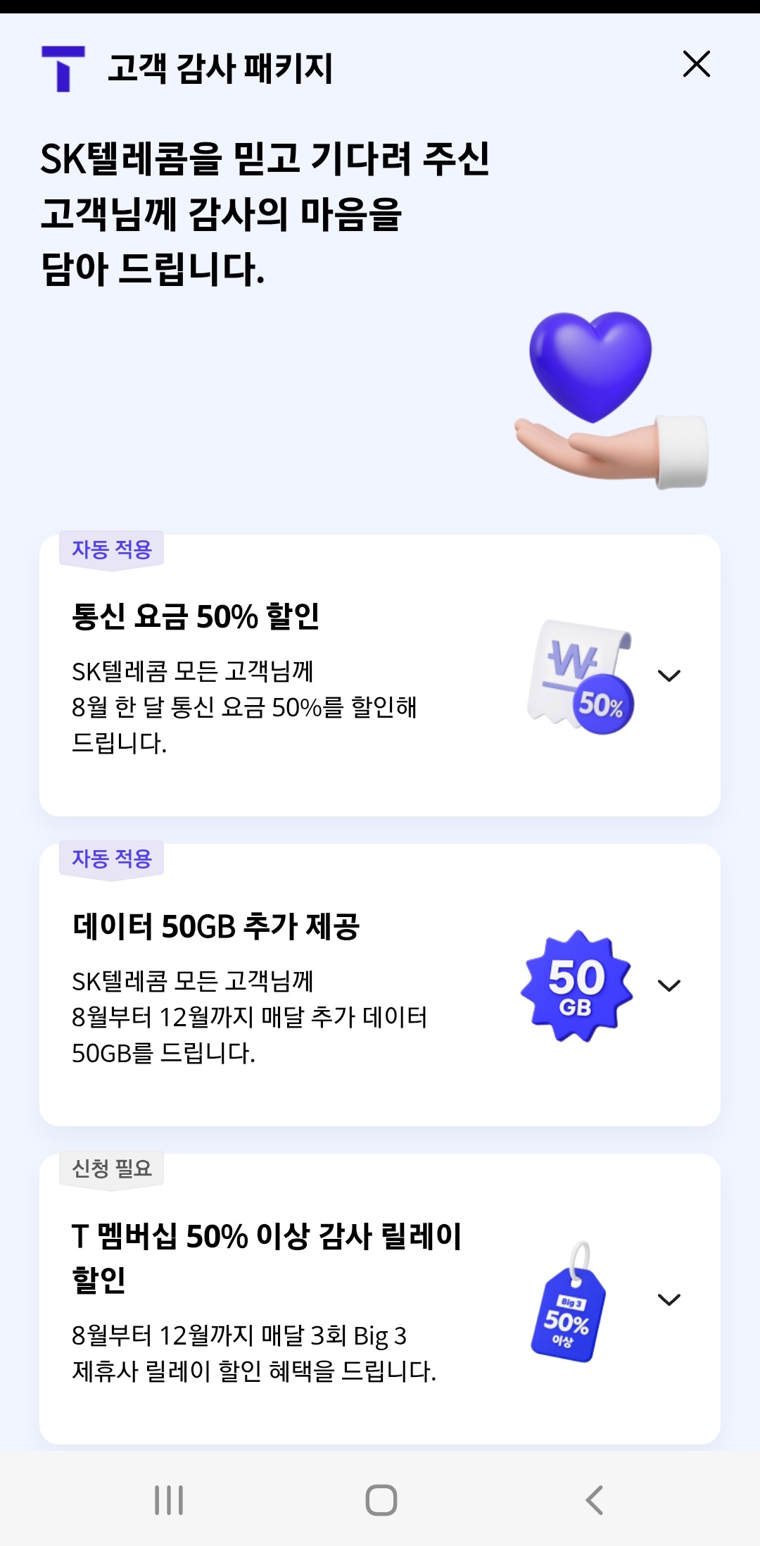 - 8월 ~ 12월까지, 50G 데이터 추가 제공