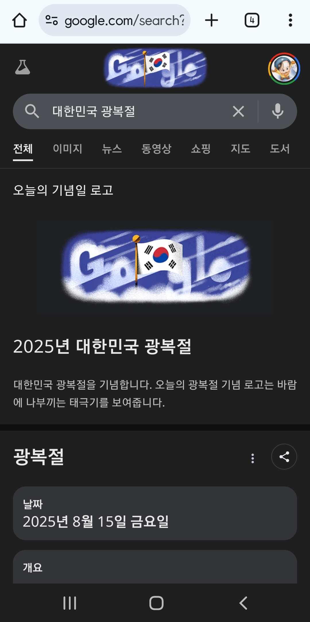 (구글로고) 광복 80주년 태극기 본문