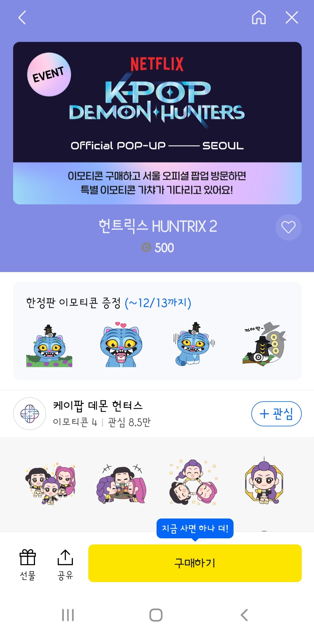 [카톡 이모티콘] 케이팝 데몬 헌터스, 이모티콘이 또 나왔다 : 헌트릭스2, 사자보이즈2/ 케데헌 서울 오피셜 팝업 스토어(12.4~12.28)