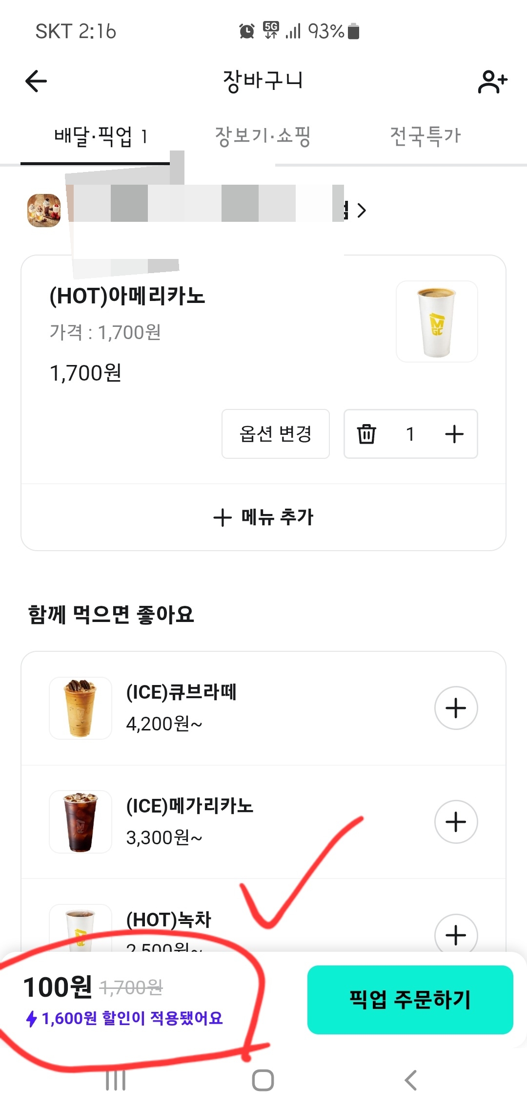 [내돈내산] 배민픽업×메가커피 100원
