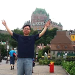 [2008-07-09]Quebec - Chateau Frontenac(2) ... 성 구경하러~ 드디어! 이 근사한 성앞에 왔다. 옛날에는 성이었던거 같은데 지금은 호텔로 개조된 모양이다.이런게 가능하다니.. 우리나라로 치면 경복궁을 호텔삼아 개조해버린격.. 성 근처에 레스토랑이나 일반 가게들이 많았다. 아침부터 내리던 비는 그치지 않고 계속 내렸다. 호텔 직원들도 옛날 사람들 옷을 입고 있었다. 모자에 코트에.. 아니면 드레스에 모자에. 이게 뭐하는 곳이에요. 하고 설명해주는 안내원도 있었는데, 안타깝게도 역시 불어로 얘기를 해주고 있어서 그냥 지나갔다. 내 옆에 있는건 사람이 아니라 '사람 크기의 종이'였다. 진짜 같이 보였다!! 근사하게 생겼다. 인증샷도 남겼다 : ) 마차와 자동차가 같이 다니는 ..