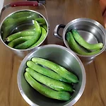 오이장아찌 - 오이가 싸서 사왔는데, 뭘할까 고민하다가 시도해봤다. 우유 하나 사러 마트 갔는데, 오이 7개에 1900원하는걸 발견했다. 보통 3개에 천얼마씩 파는걸 봤던거 같은데! 싸구나. 싶어서 샀다. 그런데 식구도 없는 집에 이 많은 오이를 뭐에다가 쓴다지? 게다가 요리하는걸 좋아하는 것도 아닌데, 하고 고민하다가 오이장아찌를 해보기로 했다. 요리에선 무엇보다 비율이 중요하다는데, 오이와 물, 소금 비율을 잘 맞춰야겠다 싶었다. 여기저기 찾아보고 결론을 내렸다. 오이 장아찌 황금비율(?) = 오이 20개 : 물 10컵 : 소금 1컵 (물 10컵일 경우, 나중에 꺼내서 물에 씻어서 먹어야 한다..