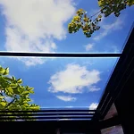 전에 갔던 어떤 건물의 엘리베이터 천장이다. 좋은 아이디어다. 요즘처럼 파란 하늘 보기 어려운 때는 비록 그림이지만, 가짜 하늘 보는 것도 좋을듯 싶다. 비가 오락가락 한다.