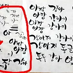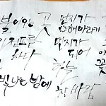 중급반 2회와 3회는 "귀여운체"를 배우고 연습하는 시간이었다. 사정이 생겨서, 2회와 3회 수업을 못 듣게 되었는데, 다른 요일에 몰아서 간단하게 설명 들을 수 있었다. 자음 또는 모음을 굵게 쓰면 귀여운체가 된다. 자음에 밑에 부분을 두껍게 써야하는데, 아직 습관이 안되서 얇게 떨어진다. 그러니까 귀여움이 떨어져보였다. 중급반부터는 '필붓'(세필보다 두꺼운 붓)으로 쓴다고 하는데, 도구를 바꾸면 좀더 다양한 두께의 글씨를 표현할 수 있다고 하셨다. 그날 임시로 간거라서 얇은 붓으로 쓰다보니 아무래도 한계가 있었다. 같은 글자가 반복될때 표현을 달리해줘야 전반적으로 살아보인다. 보기에 편한 글씬데, 막상해보니 잘 안됐다. 연습이 필요하다. 2015/08/23 - [..