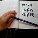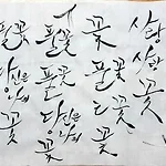 초급반 7주 과정 중에 네번째 수업을 들었다. 이번 시간에는 "곡선체 응용"하는 법을 연습했다. 아무 생각없이 쓰다보면 나도 모르게 똑같이 쓰게 된다. 그래서 선생님 말씀대로, 글자를 하나 쓰고나서 다음 글자 쓸때는 앞에 글자와 다른 방법으로 써보고 그 다음 글자는 앞에 글자와 또 다르게 써보는 식으로 해봤다. 선생님은 왼쪽에 하늘색으로 표시한 "꽃"이라는 글자가 예쁘다고 하셨다.울집아저씨한테 보여주니까, 아저씨도 그 글자가 맘에 든다고 했다. "날아가는 꽃처럼, 안정적으로 보이네." 두번째 시간에 "직선체 응용"할때; 한번 겪어봐서 그런지 이번에 곡선체 응용할때는 할만했다. "글씨를 쓰는"게 아니라, "글씨를 그리고" 있는거 같다. 2015/05/20 - [글그리기] - [초급반7회]종이액자 : 낙관의..