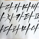 캘리그라피 중급반 7회 : "날렵한체" 써보기 # 내 글씨 이 날은 일상생활에서 많이 보는 '날렵한 글씨체'를 배웠다. 가나다라..부터 연습해봤다. 단어도 몇개 연습해봤다. 그런데 아직 '강약조절'이 잘 안되서, 글씨가 아쉬운 감이 있다. 강약조절과 구도가 핵심인거 같은데, 아직 갈길이 멀다. # 선생님 글씨 확실히 선생님 글씨가 멋지다! 힘 조절이 잘 되서 그런지, 굵기랑 상관없이 진짜 날렵해 보인다. 선생님이 써주신 단어도 역시 멋지다. # 남편 글씨 집에 와서 연습하다가, 잠깐 전화받고 자리에 왔더니 울집아저씨가 이렇게 써놨다. 아저씨 글씨도 좋네 : ) 2015/08/23 - [글그리기] - [중급반12회]완성한 낙관도장 찍어보기 2015/08/12 - [글그리기] - [중급반10회/11회]연습돌..