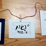 초급반 7주 과정 중에 마지막 시간인 일곱번째 수업을 들었다. 이번 시간에는 종이액자에 들어갈 글귀를 써서 넣는 작업을 했다. 글귀만 써서 넣으면 끝인줄 알았는데, 선생님이 낙관을 자그마하게 그려서 넣어주셨다. (낙관 한개는 내가 그렸는데; 망쳤다. 얍삽하게 그리는게 쉽지 않은 일이었다.) 낙관을 그려넣고 나니, 훨씬 작품성(?)이 있어보였다. 서예에서도 마찬가지지만, 제일 마지막에 낙관을 넣어야만 완성되는거라고 말씀해주셨다. 위에 낙관 넣은 작품과 넣기 전인 작품 두개를 비교해보면 차이가 확연히 느껴진다. 종이액자 완성한 다음에도 시간 다 끝날때까지, 열심히 글쓰는 연습을 했다. 저번 시간에 말씀하셨던거처럼, 같은 문구라도 다른 느낌이 나도록 ..