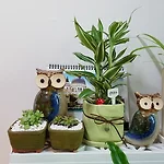 다육이와 샹데리아 : 사무실 창가 위 풍경 사무실 창가에 갖다두기 위해, 다육이 2개와 샹데리아 화분을 샀다. 샹데리아랑 화분은 따로 산건데, 꽃집 아주머니가 그 자리에서 분갈이를 해주시면서 이름표와 빨간 버섯을 꽂아주셨다. 토요일날 산거라 집에 이틀 놔두고, 월요일날 들고 갔다. 가져간 화분 3개를 원래 있던 화분 옆에 두니까, 고만고만한 녀석들이 조로록.. 서있는 느낌이었다. 그래도 3개보다 6개가 더 좋아 보인다. 볕이 잘 드는 자리라서 쑥쑥 자랄 것 같다. 사무실이 넓직하고 볕이 잘 드는 곳으로 이사를 했다 : ) 덕분에 볕 잘 드는 곳에서 키울 수 있는 화분을 둘 공간과 여유가 생겼다. 새로운 마음으로! 새롭게 시작해보자!!
