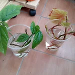 목베고니아와 클레로덴드론, 물꽂이하고 화분에 심어주기 (시리즈27) 3월말에 엄마네집에서 잘라서 가져온 가지를 물에 꽂아주었다. 그리고 시간이 지나 화분에 옮겨주었다. 하나는 클레로덴드론이고, 하나는 목베고니아다. 클레로덴드론와 목베고니아. 엄마가 키우고 계신 화분에서 가지를 잘라달라고 말씀드려서 받아왔다. 화분을 사서 키우는 것도 좋지만, 이렇게 물꽂이해서 키우는 것도 괜찮아보였다. 물꽂이 한다고 물에 담아놓고 찍은 사진. 왼쪽 클레로덴드론의 잎이 갑자기 말라 비틀어져버렸다. 깜짝 놀라서 원래 달려있던 잎을 다 잘라내고, 물에 닿아 있는 부분을 사선으로 다시 잘라주었다. 물이 깨끗하지 못해서, 힘들었나 싶어 물도 거의 이틀에 한번씩 갈아주었다. 오른쪽 목베고니아는 ..
